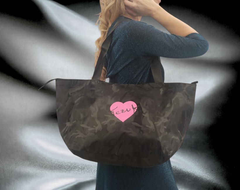 Chappellier grande con chiusura zip stampa mimetico apertura zip 55cm base 24X32cm altezza 30cm