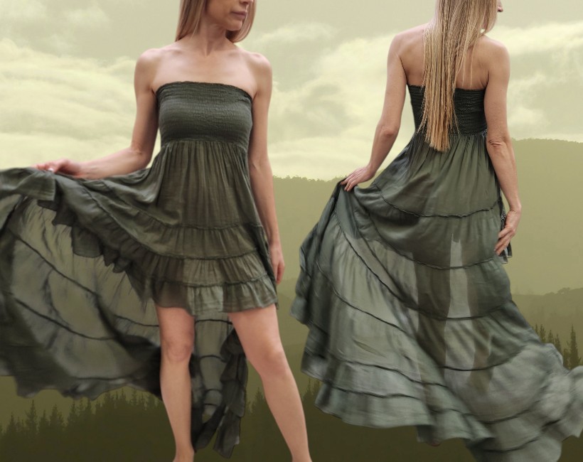 Abito con fascia arricciata sul seno.