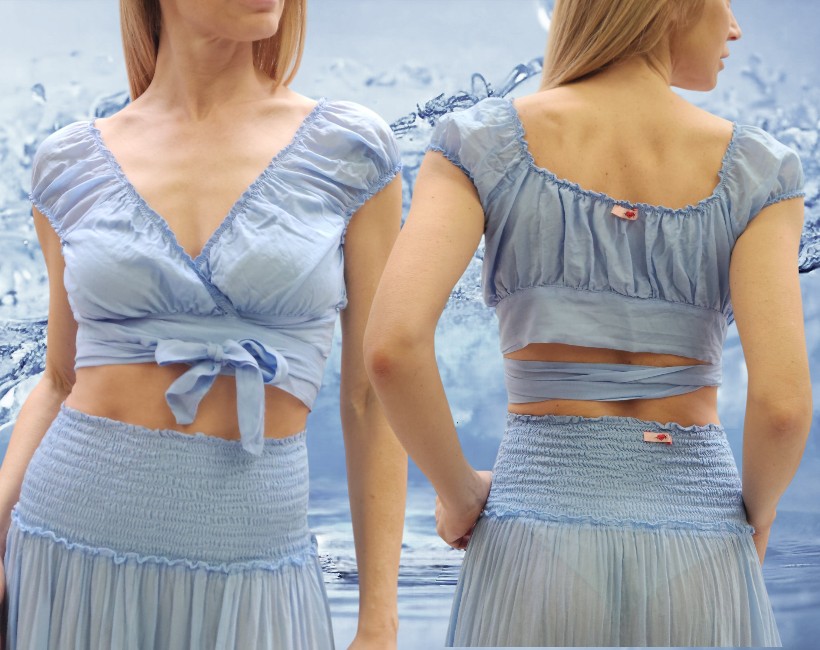 top corto incrocio con fiocco seta cotone
