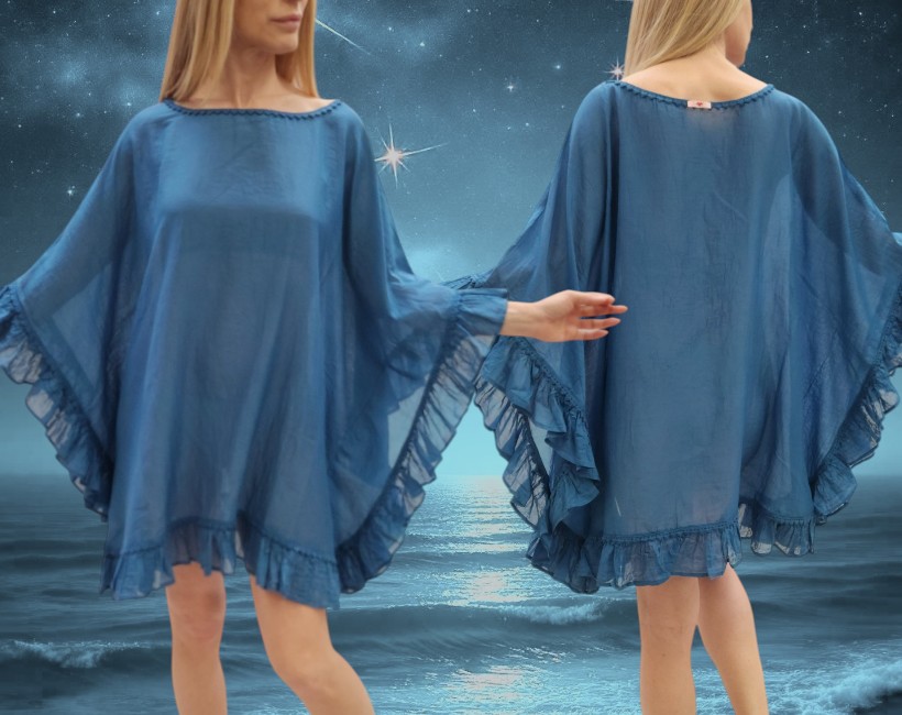 abito poncho volant tessuto seta cotone